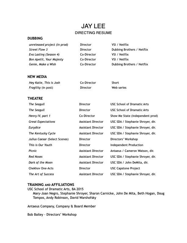 DIRECTING RESUME (click image to download)